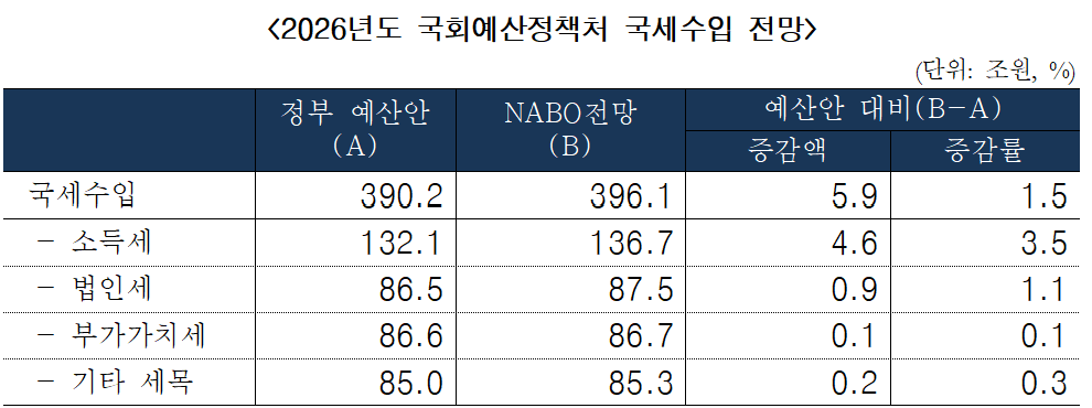 | Á¦¸ñ | ¿¹Á¤Ã³ "³»³â ±¹¼¼¼öÀÔ, Á¤ºÎ ¿¹»óº¸´Ù 5.9Á¶ ´õ °ÈÈú °Í" | µî·ÏÀÏ | 2025-11-03 | ||