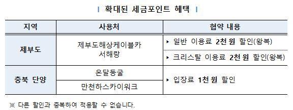 ¼¼±ÝÆ÷ÀÎÆ®·Î ¸ð¼¼ÀÇ ±âÀû°ú ¿Â´Þ¼³È ¸¸³´Ù±¹¼¼Ã»ÀÌ ¼¼±ÝÆ÷ÀÎÆ® »ç¿ëó¸¦ È®´ëÇØ Á¦ºÎµµ¿Í ´Ü¾ç¿¡¼µµ ÇýÅÃÀ» ¹ÞÀ» ¼ö ÀÖ°Ô µÆ´Ù. ±¹¼¼Ã»Àº Áö³ 14ÀÏ Á¦ºÎµµÇØ»óÄÉÀ̺íÄ« ¼Çضû°ú, 18ÀÏ ´Ü¾ç°ü±¤°ø»ç¿Í ¼¼±ÝÆ÷ÀÎÆ® »ç¿ëó È®´ë¸¦ À§ÇÑ ¾÷¹«Çù¾àÀ» ü°áÇß´Ù°í 28ÀÏ ¹àÇû´Ù. À̹ø Çù¾àÀ¸·Î ±¹¼¼Ã»Àº ¿Ã »ó¹Ý±â ¼¿ï ¼ÒÀç ¹Ú¹°°ü°ú ¾ÆÀ̽º¸µÅ©, Á¦ÁÖµµ °ü±¤Áö¿Í È£ÅÚ¿¡ ÀÌ¾î ¾Æ¸§´Ù¿î ¼ÇØÀÇ ³«Á¶¸¦ °¨»óÇÒ ¼ö ÀÖ´Â Á¦ºÎµµ¿Í ÀÚ¿¬ÀÇ ½Åºñ·Î¿ò°ú Àü¼³ÀÌ ¾î¿ì·¯Áø ÃæºÏ ´Ü¾çÀ¸·Î ¼¼±ÝÆ÷ÀÎÆ® »ç¿ë ¹üÀ§¸¦ ³ÐÇû´Ù. Á¦ºÎµµ¿¡¼´Â Á¦ºÎµµÇØ»óÄÉÀ̺íÄ« ¼Çضû ÀÌ¿ë ½Ã ÀÏ¹Ý ÀÌ¿ë·á ¿Õº¹ 2000¿ø°ú Å©¸®½ºÅ» ÀÌ¿ë·á ¿Õº¹ 2000¿øÀ» °¢°¢ ÇÒÀιÞÀ» ¼ö ÀÖ´Ù. ÃæºÏ ´Ü¾ç¿¡¼´Â ¿Â´Þµ¿±¼ ÀÔÀå·á 1000¿ø ÇÒÀΰú ¸¸ÃµÇϽºÄ«ÀÌ¿öÅ© ÀÌ¿ë ÇÒÀÎ ÇýÅÃÀÌ Á¦°øµÈ´Ù. ´Ù¸¸ ´Ù¸¥ ÇÒÀΰú Áߺ¹ Àû¿ëÀº ºÒ°¡´ÉÇÏ´Ù. ±¹³» ÃÖÀå ±æÀÌ 2.12kmÀÇ ÇØ»óÄÉÀ̺íÄ« ¼ÇضûÀ» ÀÌ¿ëÇϸé ȼº ÆÈ°æ Áß ÇϳªÀÎ '¸ð¼¼ÀÇ ±âÀû' Á¦ºÎµµ¿Í ¼ÇØÀÇ ³«Á¶¸¦ Çϴñ濡¼ °¨»óÇÒ ¼ö ÀÖ´Ù. ¼ÇضûÀº ¹Ý·Áµ¿¹°°ú ÇÔ²² ž½ÂÀÌ °¡´ÉÇØ °¡Á· ´ÜÀ§ ¹æ¹®°´µé¿¡°Ô »ö´Ù¸¥ ¿©Çà °æÇèÀ» Á¦°øÇÑ´Ù. ¿Â´ÞÀ屺°ú Æò°°øÁÖÀÇ Àü¼³·Î À¯¸íÇÑ ¿Â´Þµ¿±¼¿¡¼´Â ¼öõ ³âÀÇ ¼¼¿ùÀÌ ¸¸µé¾î³½ Á¾À¯¼®°ú ¼®¼ø µî ÀÚ¿¬ÀÇ Á¶°¢Ç°À» °¨»óÇÒ ¼ö ÀÖ´Ù. ¸¸ÃµÇϽºÄ«ÀÌ¿öÅ©¿¡¼´Â »ïÁß À¯¸® ¹Ù´Ú ¾Æ·¡·Î ³²ÇѰÀÌ È帣´Â dz°æÀ» ³»·Á´Ùº¸¸ç Àýº® ³¡À» °È´Â µíÇÑ Â¥¸´ÇÑ Ã¼ÇèÀÌ °¡´ÉÇÏ´Ù. ¼¼±ÝÆ÷ÀÎÆ®¸¦ »ç¿ëÇØ ÀÌ¿ë·á ÇÒÀÎ µî ÇýÅÃÀ» ¹ÞÀ¸·Á´Â ³³¼¼ÀÚ´Â ±¹¼¼Ã» ¸ð¹ÙÀÏ È¨ÅýºÀÎ ¼ÕÅýº¿¡¼ ¸ð¹ÙÀÏ ÄíÆùÀ» ¹ßÇàÇØ »ç¿ëó Á÷¿ø¿¡°Ô Á¦½ÃÇÏ¸é µÈ´Ù. ÄíÆùÀº »ç¿ëóº°·Î 1ÀÏ ÃÖ´ë 5¸Å±îÁö ¹ß±Þ °¡´ÉÇÏ´Ù. ¸ð¹ÙÀÏ ÄíÆùÀº ¼ÕÅýºÀÇ 'MyȨÅýº > ¼¼±ÝÆ÷ÀÎÆ® > ¼¼±ÝÆ÷ÀÎÆ® ÇýÅà ¹Ù·Î°¡±â > ¸ð¹ÙÀÏ ÄíÆù ¹Ù·Î°¡±â > ¹®È・¿©°¡ ÇÒÀÎ ÄíÆù' ¸Þ´º¿¡¼ ¹ßÇàÇÒ ¼ö ÀÖ´Ù. ±¹¼¼Ã»Àº À̹ø »ç¿ëó È®´ë¸¦ ÅëÇØ ´õ ¸¹Àº ±¹¹ÎÀÌ ¼ÇØ¾È ·¹Àú½Ã¼³°ú ÃæºÏ ³»·úÀÇ °ü±¤¸í¼Ò¸¦ ¹æ¹®ÇÔÀ¸·Î½á Áö¿ª°æÁ¦ Ȱ¼ºÈ¿¡ ±â¿©ÇÒ °ÍÀ¸·Î ±â´ëÇϰí ÀÖ´Ù. ±¹¼¼Ã»Àº "¾ÕÀ¸·Îµµ ¼º½Ç³³¼¼ÀÚ°¡ ¿ì´ë¹Þ´Â ³³¼¼¹®È¸¦ Á¶¼ºÇϱâ À§ÇØ ¼¼±ÝÆ÷ÀÎÆ® Á¦µµ Ȱ¼ºÈ¿¡ ´õ¿í ³ë·ÂÇϰڴÙ"°í ¹àÇû´Ù. Á¶¼¼ÀϺ¸ / ±èÇýÀÎ ±âÀÚ phoenix@joseilbo.com |